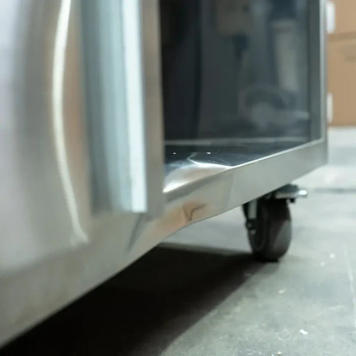 Please be aware that this Coffee Cart has minor damage to the outer base edge of the bottom of the cart. Please see photographs for reference. However, the cart still remains in fully functioning working order and will perform to the same standard as a fully new cart without the indentation.