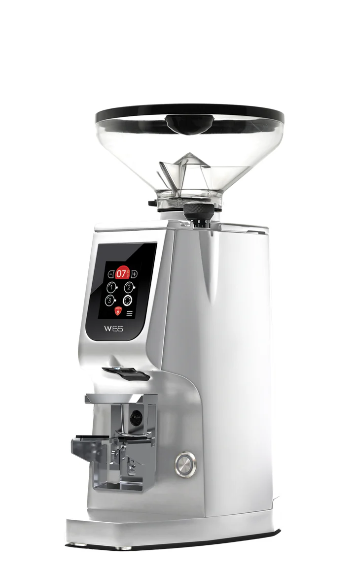 The Eureka Atom W65 Espresso Coffee Grinder is a standout in the world of espresso grinders, combining cutting-edge features and premium design. Equipped with Silent Technology, it offers a whisper-quiet grinding experience, so you can enjoy your coffee preparation without unnecessary noise. Its “High Speed” Grind Dispersion ensures fast and consistent grind distribution, perfect for achieving uniform extraction in your espresso. The Stepless Micrometric Regulation System, patented by Eureka, allows for incredibly precise grind size adjustments, catering to even the most discerning baristas. With the ACE System, it minimizes grind retention, guaranteeing the freshest grounds for every shot. The All-Purpose Adjustable “Hands-Free” Fork makes grinding effortless by securely holding the portafilter in place. Instant Grind Weighing Technology provides real-time measurement, ensuring you achieve the perfect dose every time. All these features are seamlessly controlled via the Touch Display with IPS Technology, making the Eureka Atom W65 not only highly functional but also incredibly user-friendly.