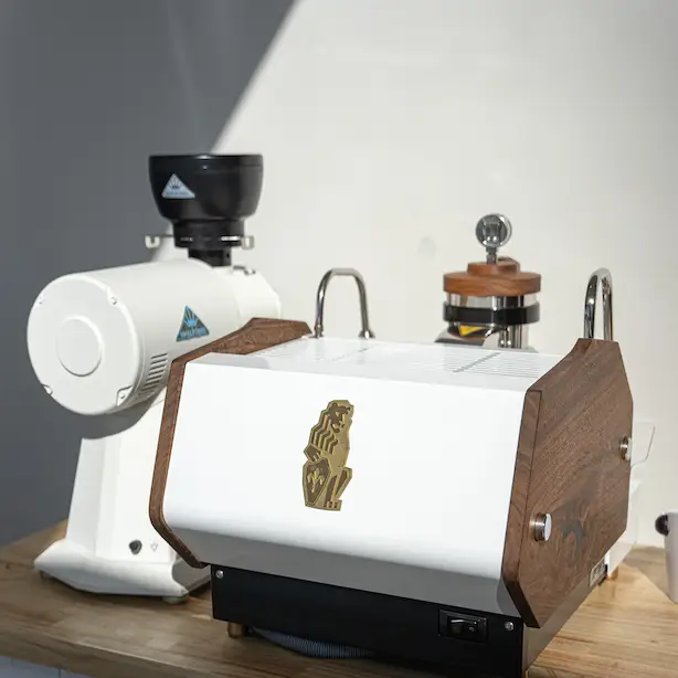 The La marzocco GS3 in Custom, White, Wood with Gold accents is an ex demo display one of a kind. This machine in these finishes makes it an extremely rare coffee machine to the market. Don’t miss this one of a kind grinder machine package.