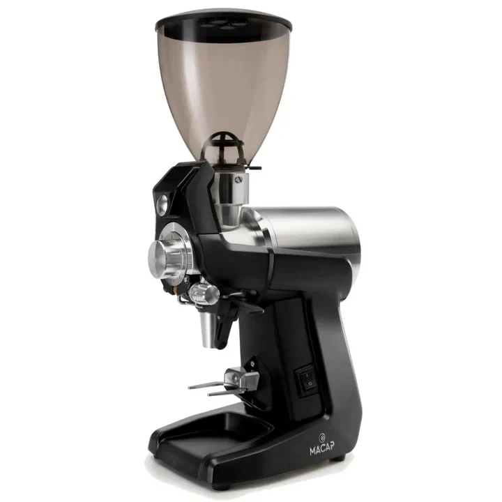 Intuition, speed, precision and stability are the essential parameters in the L70D grinder. A completely new design exudes a confidence and style that will suit any environment. The clear LCD display offers 3 programmable doses or manual continuous grinding if preferred. A speedy dose output of 6g/s, dose counter and 3D adjustment fork. The vertical blades offer 0 retention but are easily accessible for cleaning and servicing. The L70 is extremely unique as it offers 2 grinders in 1. It can operate as a deli style grinder with a front facing adjustment dial to quickly change coarseness between espresso, french press, aeropress, filter and everything in between. Plus a micrometric adjustment to fine tune your espresso setting with full electronic control of dose, like the original range of Macap grind on demand grinders.