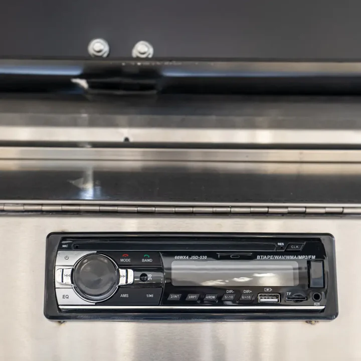 - Stainless steel fold-up side benches (in the front plate)