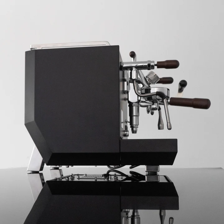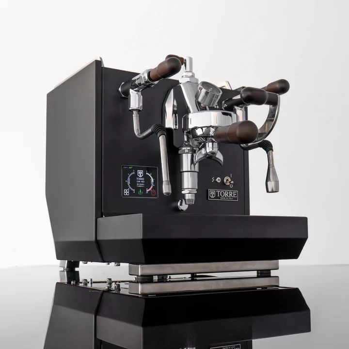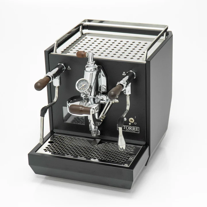 The Torre Adele Matte Black With Wood combines dual-boiler engineering with refined aesthetics. Independent AISI 316 stainless steel espresso and steam boilers operate simultaneously without thermal interference, maintaining equilibrium even during peak service periods. The steam boiler utilises pressure transducer monitoring with direct touchscreen adjustment for responsive steam control. The espresso boiler integrates sophisticated PID thermostat management, permitting water temperature calibration between 80-100°C to optimise extraction across diverse coffee origins and roast profiles. Volumetric pump technology coupled with mains water connectivity delivers consistent, reliable performance under demanding conditions. Finished in sophisticated matte black with wood accents, this machine merges professional-grade dual-boiler capability with contemporary design, ideal for operators seeking both performance and visual distinction.