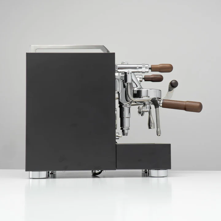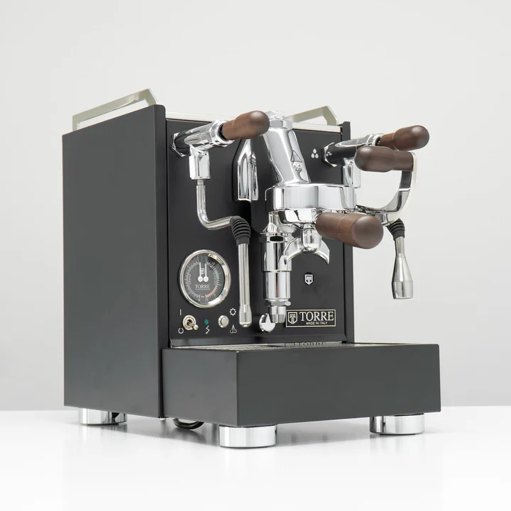 The Luigino TSP MT represents a refined evolution in home espresso technology, now featuring an advanced rotary pump system. Its thoughtfully engineered compact footprint complements modern kitchen aesthetics without compromising on capability. The legendary E61 group head delivers exceptional thermal stability, ensuring consistent extraction temperatures shot after shot. The exclusive Torre ERGOLIFT™ levetta provides ergonomic precision in tamping and lever operation, bridging the gap between professional café standards and home convenience. Matte black finish with wood accents creates a sophisticated centrepiece for the discerning coffee enthusiast.